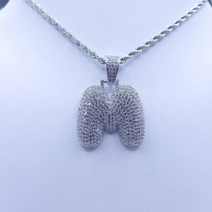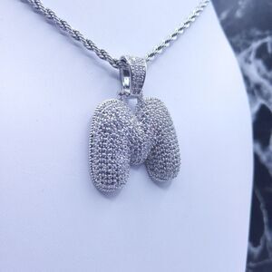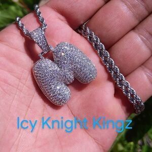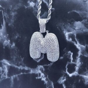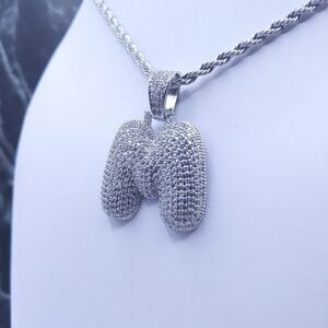 New 14K White Gold Finish Bubble Letter M. Initial & 14K White Gold Finish 20" x 3mm Rope Chain over Stainless Steel for Men & Woman.