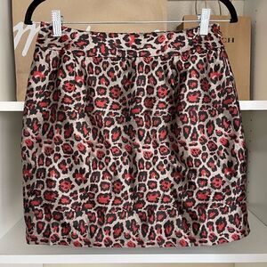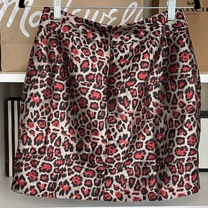 Edgy vibes! Great skirt for a special occasion or night out. Red animal print with a metallic silver. Waist 14”, length 17”.