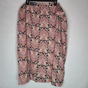20W Boho Pink Paisley Wrap Skirt Midi Lightweight Maurices NWT, plussize, flowy woven fabric, inside button closure with tie waist, high rise, mid length, unlined. Measurements approximately waist to hem 31" waist across 22" band width 1.5" weight 12oz