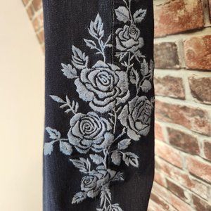 Hard to find Pioneer Woman Faves! This is sold as an outfit so you will be getting both pieces for one low price! The pull on denim pant in size XL has a gorgeous light blue floral embroidery on one leg, so unique! Flowing tunic is a generous, oversized size S/M, has varying blue and white floral patterns and has flounce sleeves--really beautiful. Worn once, laundered once.