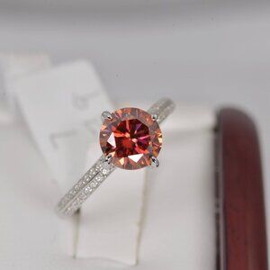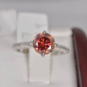 2.0ct Brilliant Round Cut Pomagranate Red Moissanite Engagement Ring