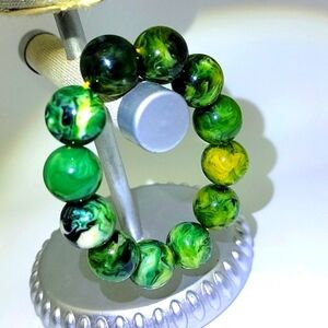20mm Green Swirl Beeswax Amber Beaded Stretch Bracelet Size 7" Certified Beads