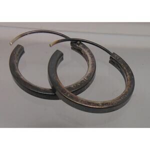20mm Vintage Sterling Silver Sleeper Hoop Earrings Oxidized Patina
