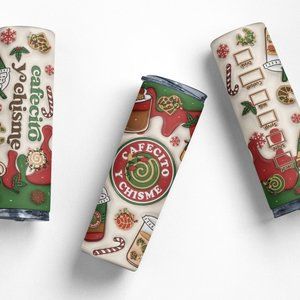 Festive Design: Featuring a Christmas Cafecito y Chisme pattern, this tumbler makes a great holiday gift idea.