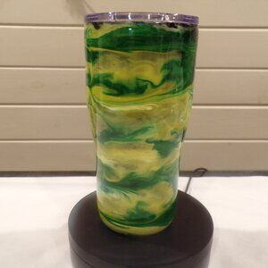 Perfect Christmas Gift, Gift Swap Gift, or Gift for her or him!!! Handmade 20 oz Epoxy Resin Stainless Steel Tumbler! Crafted in greens and yellows, this tumbler is as unique as it is functional. Made from high-quality double walled stainless steel, and will keep your beverages hot or cold for hours.
