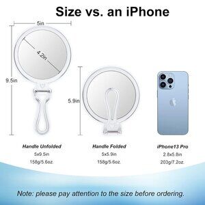 Portable and Compact Size - 5.6oz lightweight & 5'' diameter, the compact size makes it a perfect folding travel mirror, easy for us to carry and pack in a handbag, backpack or other else. What you will get is a very versatile portable mirror to show your beauty at any time.