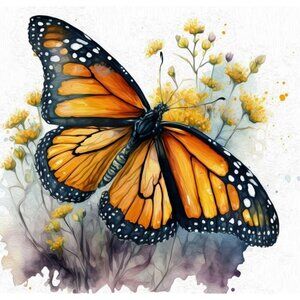 Title: Beautiful Monarch Butterfly Watercolor Oil Painting Art Print