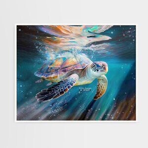 Sea Turtle Swimming Reptile Marine Aquatic Ocean Sealife Watercolor Oil Painting Art Print