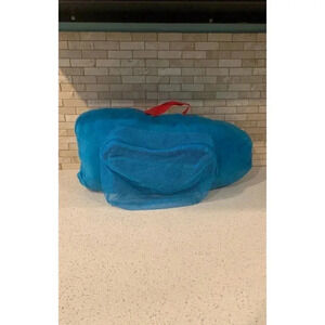 This is a Pillow with straps to be carried as a backpack, , lightweight, It has a zippered compartment to store toys or other. A couple small holes in backpack