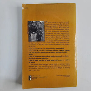 No one is more qualified to teach you how to train your dog than Dick Maller, president of the U.S. Professional Dog Trainers' Association and operator of the famous Maller School for Dogs, whose dogs have won over 100 awards and have appeared in movies and on television. Here is his easy-to-follow, effective, and above all, humane approach to training your puppy or full-grown dog in only 21 days. Using "operant conditioning" and "positive reinforcement" as the two basic training techniques, the author shows you:
