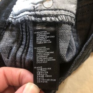 Material stretches. They are in great used condition. They have no rips stains or tears. Minimal signs of wear.