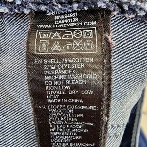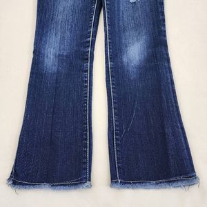 2.1 Denim skinny blue jeans are dark washed, distressed, and have a raw hem. Stretchy women’s Size 24. Pre-owned in great condition.