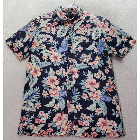 21 MEN Shirt Men's Small Multi Hawaiian Short Sleeve Pocket Collared Button Down .