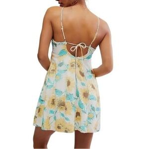 Free People Altura Printed Mini - Women's Dress : Pale Sunflower Combo : Slay a stylish look by wearing the Free People Altura Printed Mini dress. The pull-on style dress has a sweetheart neckline, spaghetti sleeves, and a flowy silhouette. Perfect to pair with anything from a strappy sandal to a stylish sneaker to a bold boot, this goes-with-anything dress is sure to be your top pick to take you from day to night. It features intricate print allover that makes it a stand-out addition to your wardrobe. ; 53% rayon, 34% cotton, 13% linen with lining. ; Machine washable. ; Imported. Measurements: ; Length: 31 in ; Product measurements were taken using size LG (Women's 12). Please note that measurements may vary by size. | Free People Altura Printed Mini Women's Dress Pale Sunflower Combo : LG (Women's 12), Cotton/Linen/Rayon.