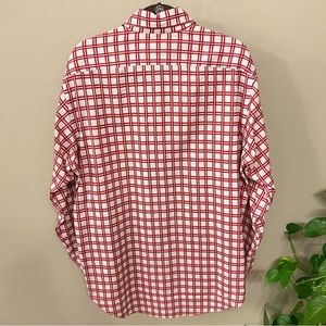 21. Neiman Marcus Men’s Cotton plaid dress buttondown Shirt, cream/red, size L