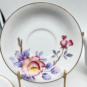 Vintage Hand Painted Tea Cup & Saucer Made in Occupied Japan Between 1945 - 1952. Corona China Was Know For Its Attention To Detail And Fabulous Colors And 14k Gold Trim.