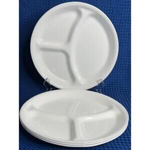 • (4) White Divided Corelle Plates – Microwave & Dishwasher Safe, 10" diameter