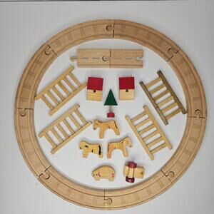 21 Piece Wooden Train Accessories Rails Circus Farm 1960's Vintage Hobby Gift