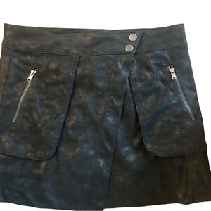21 Saints Faux Leather Mini Wrap Skirt Sz L Marked Leather Look Zip Pockets Fall
