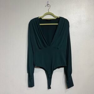 21 Saints Green Slinky Plunging Bodysuit Sz XL