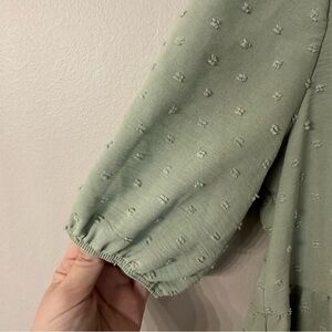 21 Saints Women’s Short Sleeve Sage Green Swiss Dot Babydoll Top Size XL GUC