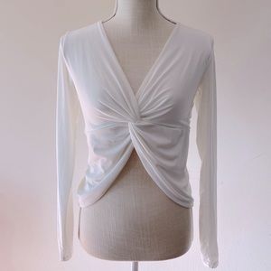 🌹21 Saints junior white twisted front open stomach top, V neck long sleeve M