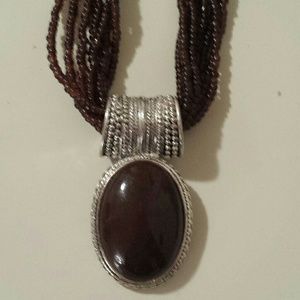 Beautiful 22" deep brown beaded necklace with a brown stone laid in sliver. It is absolutely stunning! NWOT