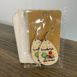 2/$10 ⭐️ 3/$12 | Wooden Teardrop Teachers Change the World Earrings