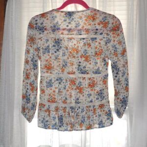 American Eagle Boho Style Top. Soft flowing colorful top. 100% Viscose. Measurements laying flat: 15" from Pit to Pit and 22 1/2" from Shoulder to Hemline.