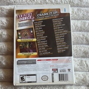 Experience the joy of dancing with Nintendo's Country Dance 2, featuring a vibrant white and yellow design. This game offers an exciting lineup of country hits, perfect for music enthusiasts. Enjoy seamless gameplay on your Nintendo Wii console. Features songs such as Roll with it by Easton Corbin, my kind of party by Jason Aldean, little white church by little big town, gunpowder and lead by Miranda lambert and more