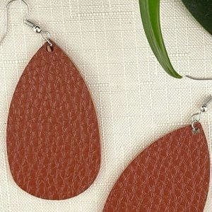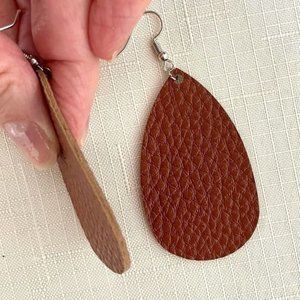2/$10 Penny Brown Faux Leather Lightweight Teardrop Earrings New