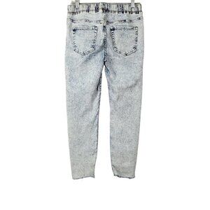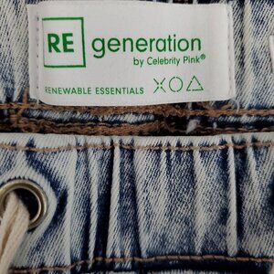 Re-Generation By Clebrity Pink Jeans. Poppy joggers jeans in a mid acid wash rinse. Material is very stretchy and comfortable. Waist is elasticized for best fit and comfort with a draw string. High Waist, distressed ripped jeans. Raw bottom hemline. Easy pull over style. Sure to become a fave !