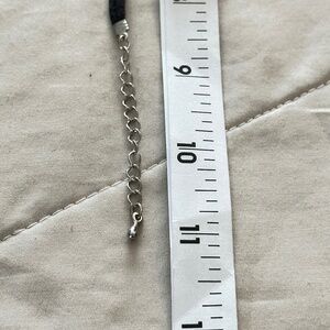 2/$10 Silver tone & double black Cord bracelet. “Choose Your Dreams“ etched on both sides of rectangle. Double black cord is very soft. Silver rectangle w/inside cut out is main focus w/small heart charm hanging off side. Adjustable from 9” - 11” long. Silver tone extension chain & lobster clasp. Could be used as anklet or bracelet.