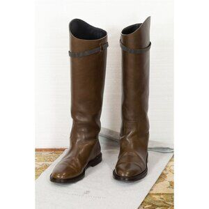 $2100 BRUNELLO CUCINELLI BROWN LEATHER KNEE HIGH RIDING BOOTS SIZE 38