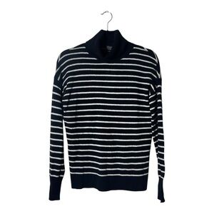 2102. HALOGEN 100% CASHMERE TURTLE NECK SWEATER STRIPES BLACK AND WHITE NWT