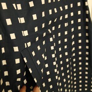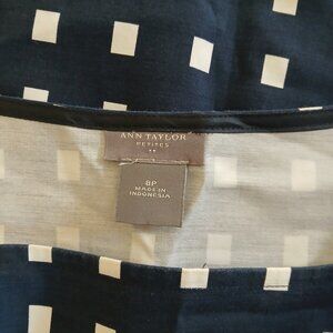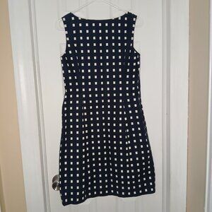 Ann Taylor Petites Women's Size 8P Sheath Navy Blue White Windowpane Sleeveless Square Neck Dress