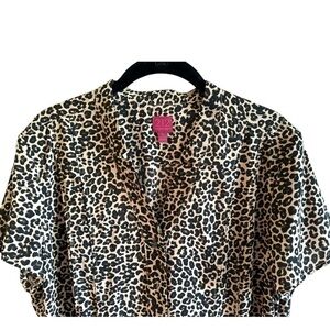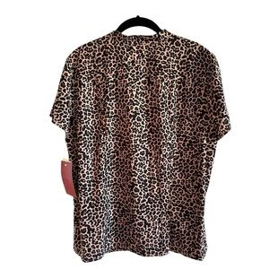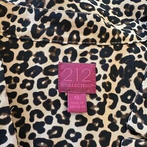 212 COLLECTION, NWT, WOMENS BROWN/BLACK ANIMAL PRINT TOP. PERFECT FOR DRESS UP OR DRESS DOWN WITH JEANS. V-NECK, BUTTON DOWN FRONT, SHORT SLEEVE, FRONT & BACK STITCHING, DOUBLE PLEATS AT FRONT & BACK HEM. SIZE XL