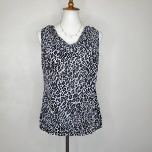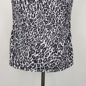 212 Collection Black White Animal Leopard Print Drape Neck Top Size S