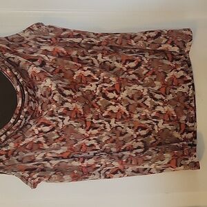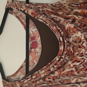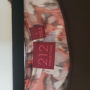 Beautiful 212 Collection pre-owned Tank Topin Large. It has brown and like a peachy orange coral color. It has a scoop neck. 95 % Polyester 5 % Spandex.