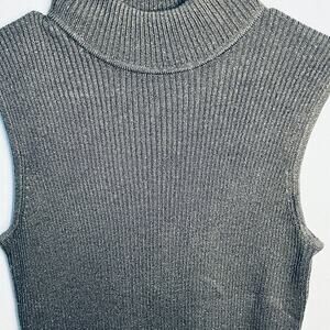 212 Collection Silver Shimmer Sleeveless Mockneck Sweater M