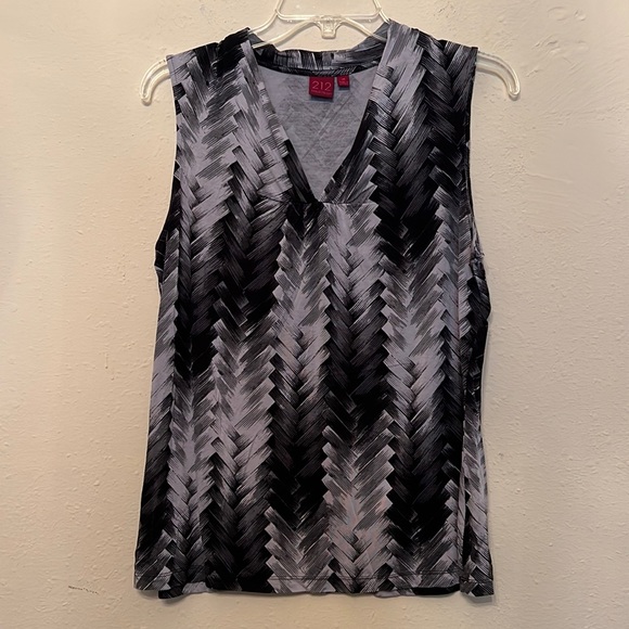 Black and gray herringbone pattern tank top style shirt, size medium. 95% rayon, 5% spandex. Top is in excellent condition.