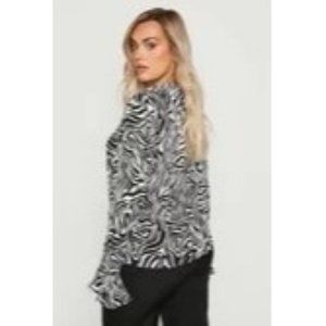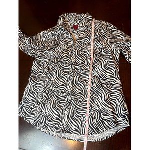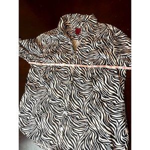 212 Collection Women Button Up Blouse Top 3/4 Sleeve Zebra Print Black White PM