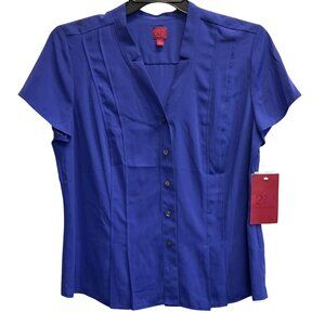 212 Collection Womens Purple Short Sleeve Notch Collar Blouse Large
