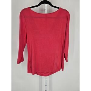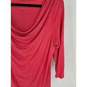 212 Collection Womens Sz L 3/4 Sleeve Draped Neck Blouse Dark Salmon Pink