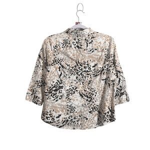Chic and wild—this 212 Collection petite stretch blouse turns heads with its fierce neutral-tone animal print and flattering button-down silhouette. Features a structured collar, 3/4 sleeves, and tailored darts for a figure-friendly fit. Lightweight with stretch for comfort—perfect for both workwear and elevated casual looks. You deserve to stand out in style.