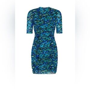 212 Ganni Women's Printed Mesh Dress - Azure Blue Size 34