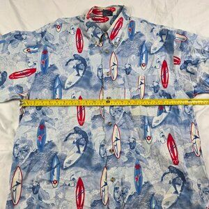 212 NYC Hawaiian Mens Size XL Blue White Button Up Shirt Surfboard Surfer Aloha