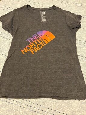 2/12 North Face Women's 'Take A Hike' V-Neck Tee — Light Gray with Black Print