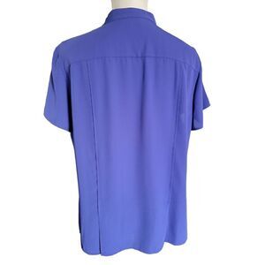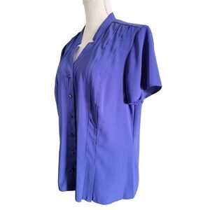 212 Collection Women's Blouse, Top. Button down. Size XL. Material and care instructions in photos. Non-smoking home. Approximately 25" in length and approx. 20" armpit to armpit. No stains or tares. Purple Color.