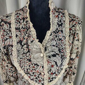 213 by Michelle Kim Multicolor Long Lace Sleeve Victorian Inspired Blouse Sz S